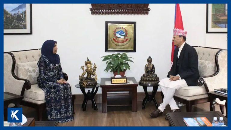 काठमाडौँ, १३ फागुन । परराष्ट्रमन्त्री बालानन्द शर्मासँग नेपालका लागि माल्दिभ्सकी नवनियुक्त गैर-आवासीय राजदूत आइशाथ अजीमाले शिष्टाचार भेटवार्ता गर्नुभएको छ। बुधबार परराष्ट्र मन्त्रालयमा भएको भेटका क्रममा दुई देशबीचको सम्बन्ध र आपसी सहकार्यका विविध पक्षमा छलफल भएको छ।