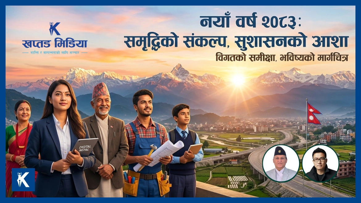 विक्रम संवत् २०८३ को सुखद आगमनसँगै खप्तड मिडिया नेपालका समस्त पाठक, दर्शक र देश–विदेशमा रहनुभएका नेपाली दाजुभाइ तथा दिदीबहिनीहरूमा सुख, शान्ति र समृद्धिको हार्दिक मंगलमय शुभकामना व्यक्त गर्दछौँ । मुलुकमा भर्खरै भएको नयाँ सरकारको गठन र राजनीतिक सत्ता समीकरणको फेरबदलले आम जनतामा आशाको एउटा नयाँ किरण सञ्चार गरेको छ ।